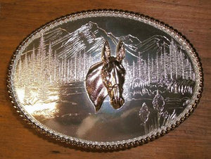 • Jewelry - Montana Silversmiths - Buckle Mule Head w/mountain background